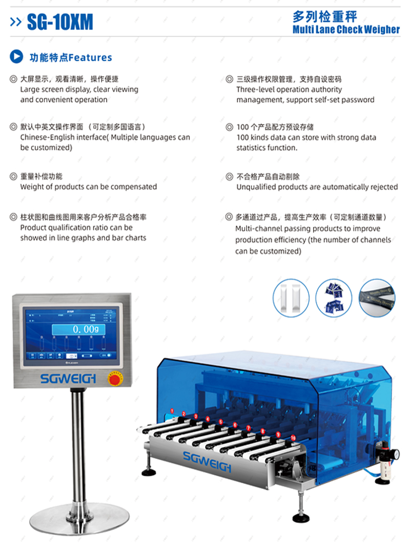 你們?nèi)绾蜗蛭彝扑]合適的自動(dòng)稱(chēng)重機(jī):為了給貴司推薦合適的機(jī)型,需要確認(rèn)以下產(chǎn)品要素信息: 1.產(chǎn)品類(lèi)型,如袋裝,瓶裝,盒裝等 2.產(chǎn)品外形尺寸(長(zhǎng)寬高),若有多種規(guī)格請(qǐng)列全或提供最大和最小尺寸。 3.產(chǎn)品重量,若有多種規(guī)格請(qǐng)列全或提供最大和最小重量。 4.速度要求,是否是勻速通過(guò)。 5.精度要求(上下偏差多少克為不合格)或檢測(cè)多一件少一件。